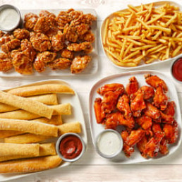 Includes two medium recipe pizzas, 14 boneless bites, 2 dips and your choice of a 2L Pepsi® product.